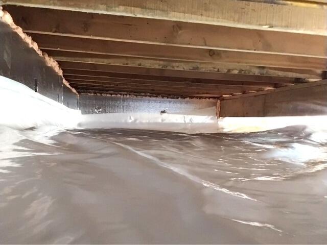 Our company transformed this crawl space by using our CleanSpace Encapsulation System to seal it off from the earth and keep moisture from getting inside. To prevent air leaks and cold drafts, we used our SilverGlo insulation panels on the walls and sealed the rim joists with foam insulation. On the floor we used our TerraBlock foam insulation as well, which is flexible and helps keep the crawl space warm too. Now this crawl space will be dry, healthy, and warm for years to come!