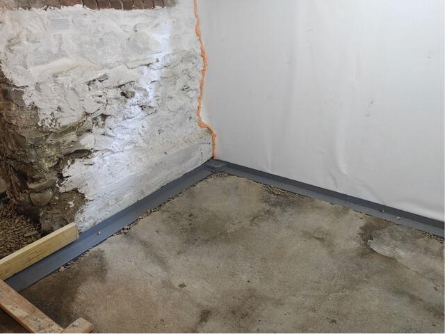 A homeowner in Newburgh, NY needed an interior drainage system installed in their basement. After inspecting the basement, our specialist proposed that we install our WaterGuard System. This system combats water intrusion by collecting the water that leaks through your basement walls using its built-in wall flange. This wall flange extends up your basement wall at 3/8” and helps direct the water into the WaterGuard System itself.