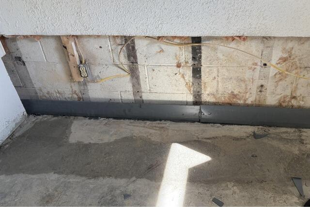 The DryTrak System is specifically designed for monolithic foundations where the foundation and footing are poured as a single piece, such as the one found in this home. This system is installed over the top of the floor, using an epoxy, so that the need for jackhammering through a thick concrete slab is eliminated. The slight opening at the top of DryTrak allows the water leaking through the walls to be collected and drained into your sump pump system.