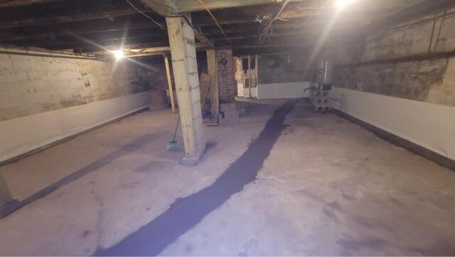A homeowner located in Highland, NY needed a full waterproofing system installed in their basement. The homeowner was experiencing issues with water intrusion and wanted their basement to be protected from flooding. Their existing sump pumps that we did not install also needed to be taken out, and the holes they left behind in the ground needed to be filled in with concrete.